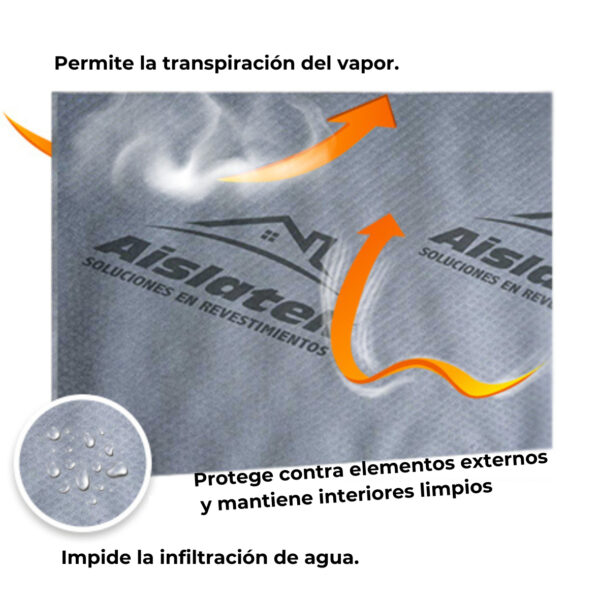 • Permeabilidad Controlada: Permite la salida del vapor de agua, previniendo la acumulación de humedad, e impide la entrada de humedad.