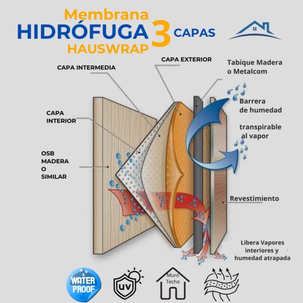 • Permeabilidad Controlada: Permite la salida del vapor de agua, previniendo la acumulación de humedad, e impide la entrada de humedad.